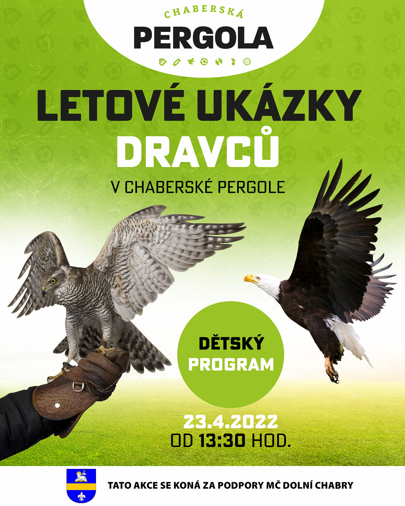 Do Chaberské PERGOLY přijede sokolník s 15 dravci vč. supa, orla, sokolů a sov.